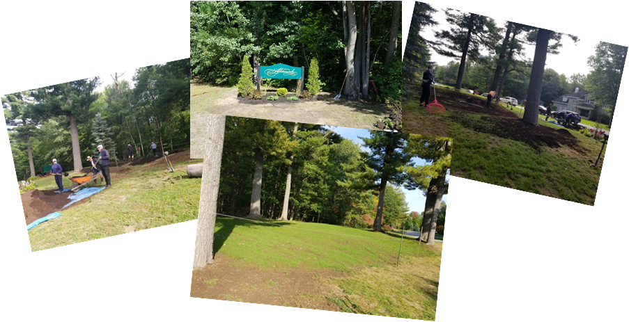 With the COVID 19, our scheduled social activities had to be cancelled this year. Yet, before the second wave of the COVID started, Steve Reed had the great idea to gather a group of volunteers to do gardening work at the south and north entrances of Alstonvale. Shrubs were planted, the ground was levelled, weeds were removed and grass seeds spread under the pine trees. After a morning of labour, all gathered for a sandwich and refreshments; we had a lot of fun! Three weeks later, we can already see the results. Thank you for all those who participated!